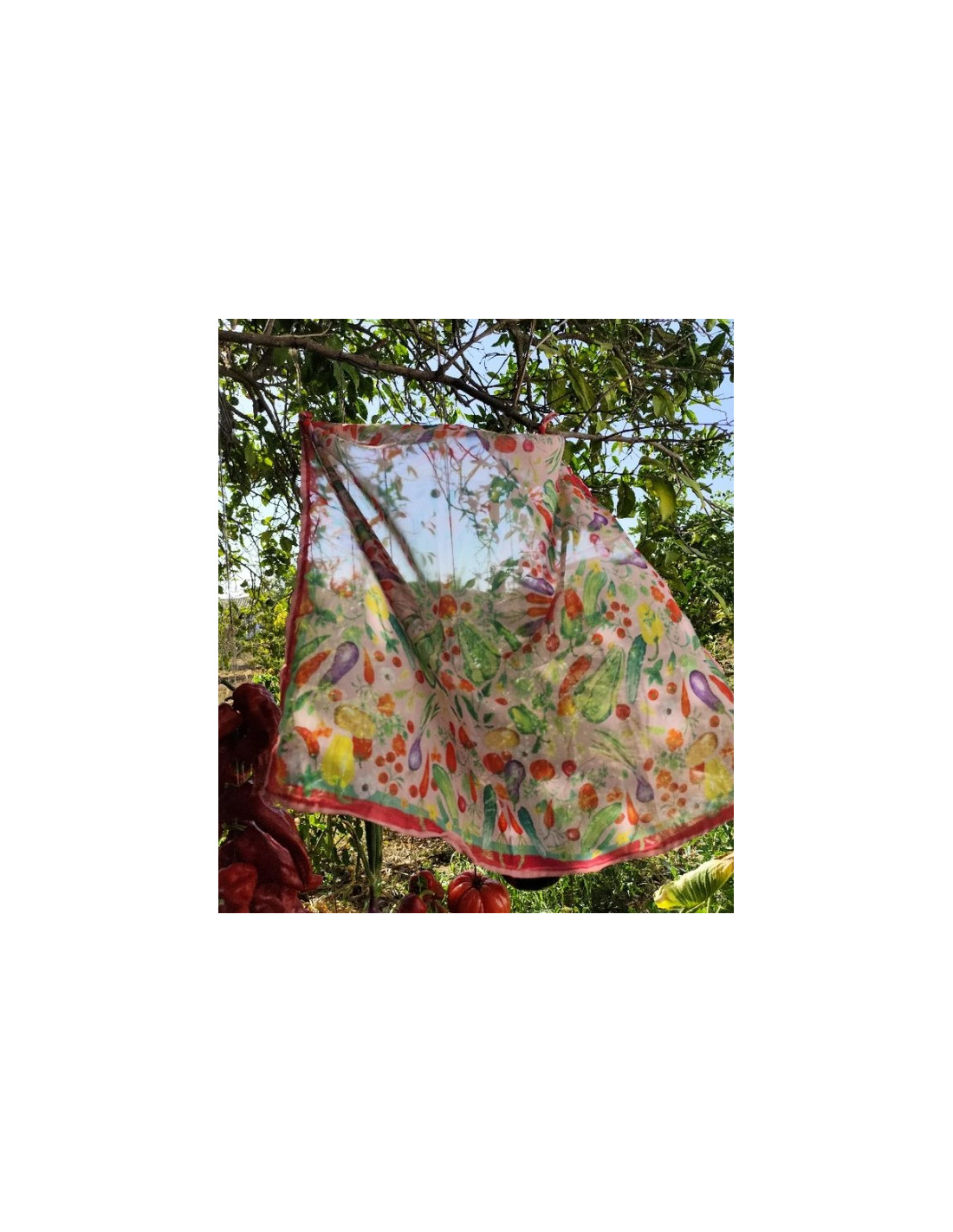 Confeccionado en voilé y con estampado de impresión ecológica con certificado OEKO-TEX®.