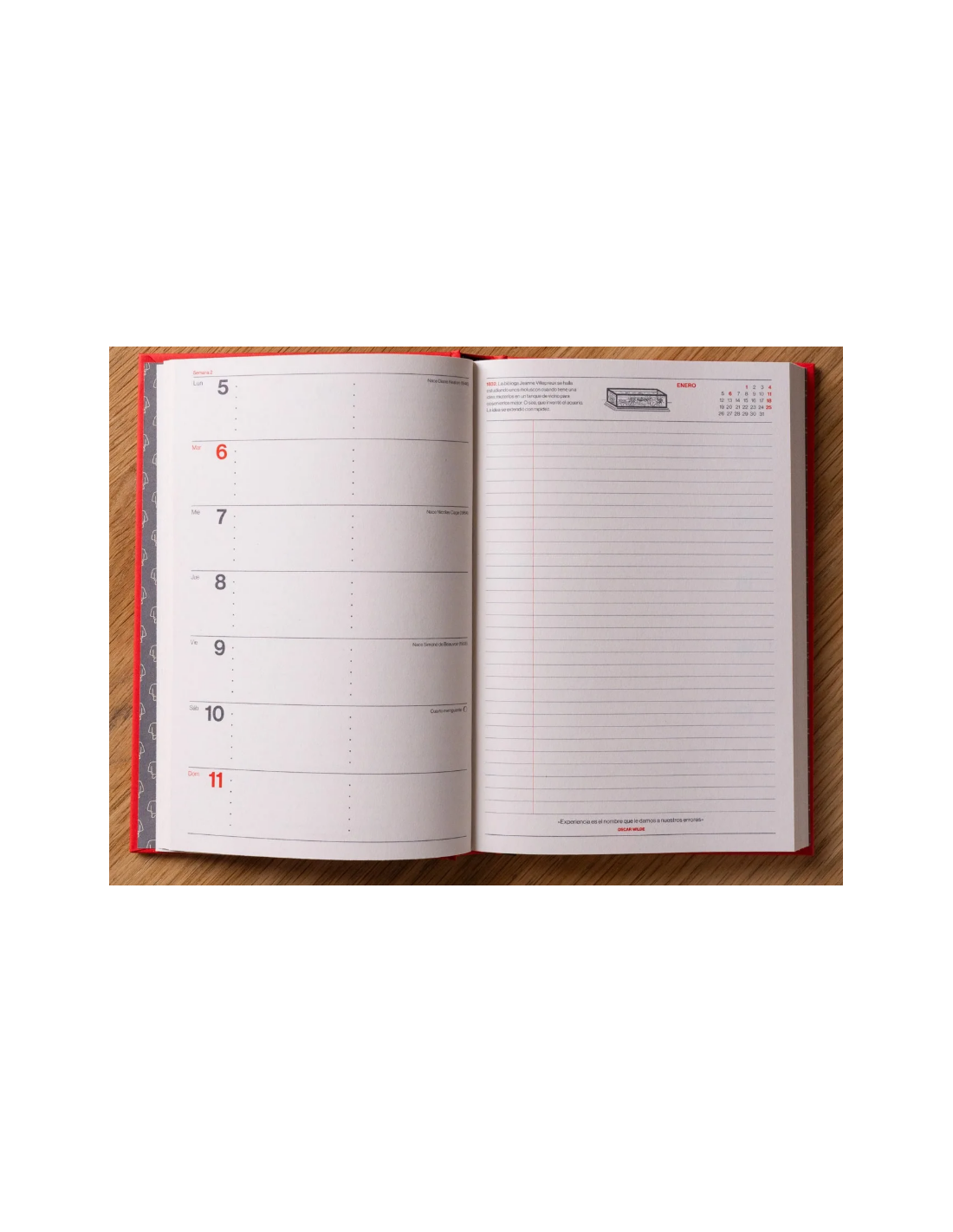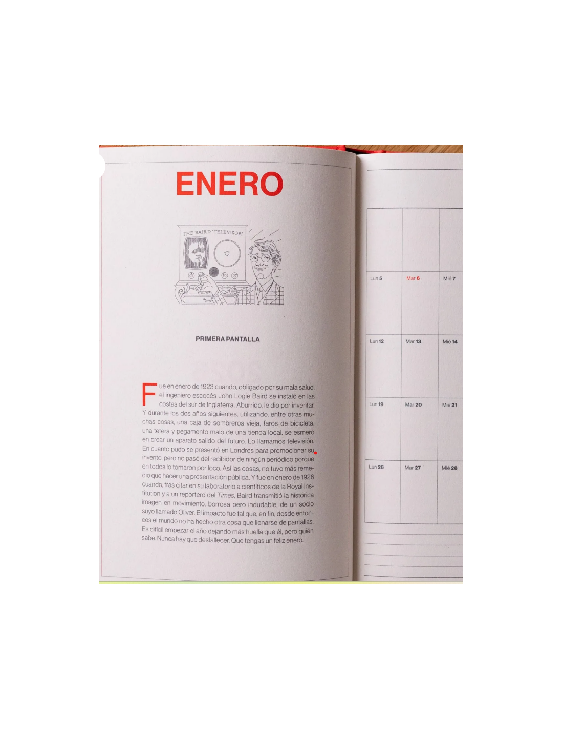 Diseñada a semana vista y con una organización modular que te permite gestionar tus tareas como quieras. Cada página está pensada para inspirarte: incluye citas motivadoras, efemérides ilustradas, y recomendaciones de películas, cómics y libros. También encontrarás un práctico calendario de frutas y verduras de temporada, listas para anotar lo que ves, lees y escuchas, y, como extra, un calendario anual desplegable.