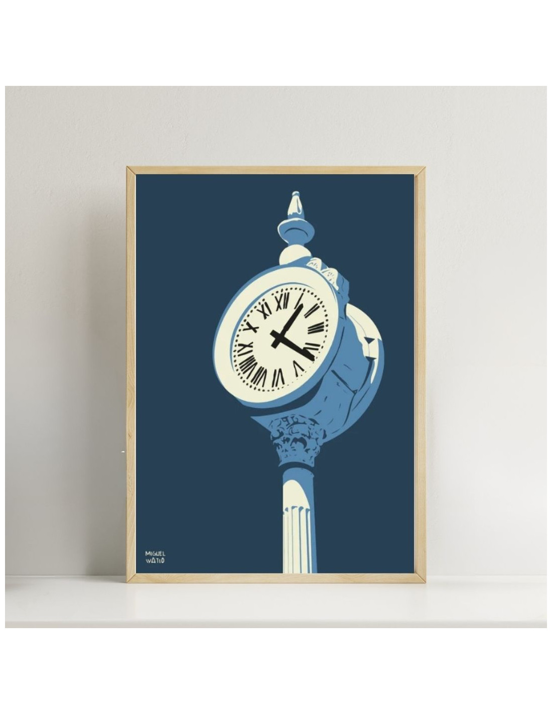 Inspirada en el reloj situado en la plaza Los Jardines de la Reina de Gijón fué construido hacia 1922 y tiene un hermano similar en El Musel.