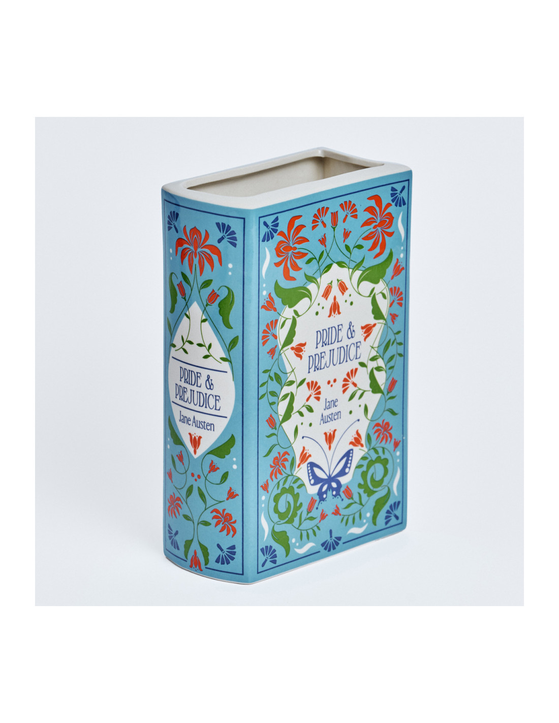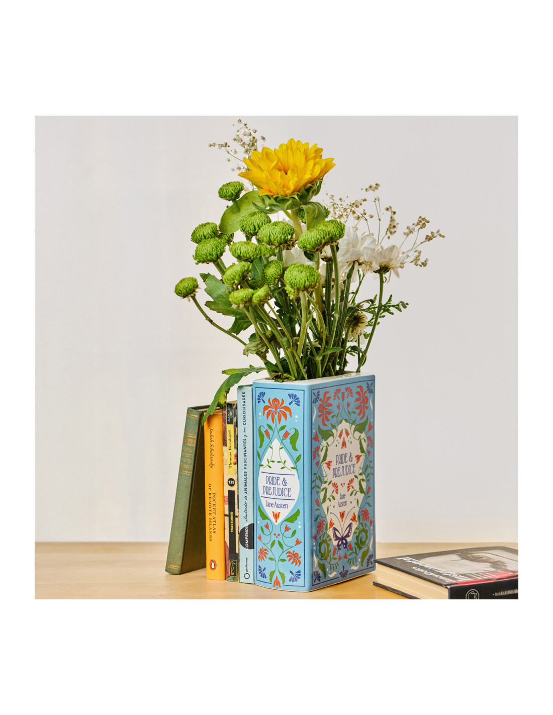 Dale a tus margaritas, tus tulipanes o incluso a un ramo de flores secas un hogar digno de la señorita Elizabeth Bennet. Este jarrón en forma de libro se camufla en tu estantería como una edición preciosa y vintage de "Orgullo y Prejuicio" de Jane Austen.