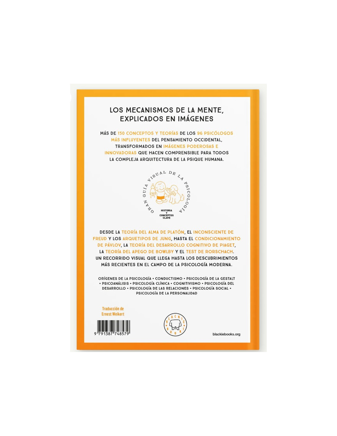Desde la teoría del alma de Platón, el inconsciente de Freud y los arquetipos de Jung, hasta el condicionamiento de Pavlov, la teoría del desarrollo cognitivo de Piaget, la teoría del apego de Bowlby y el test de Rorschach.