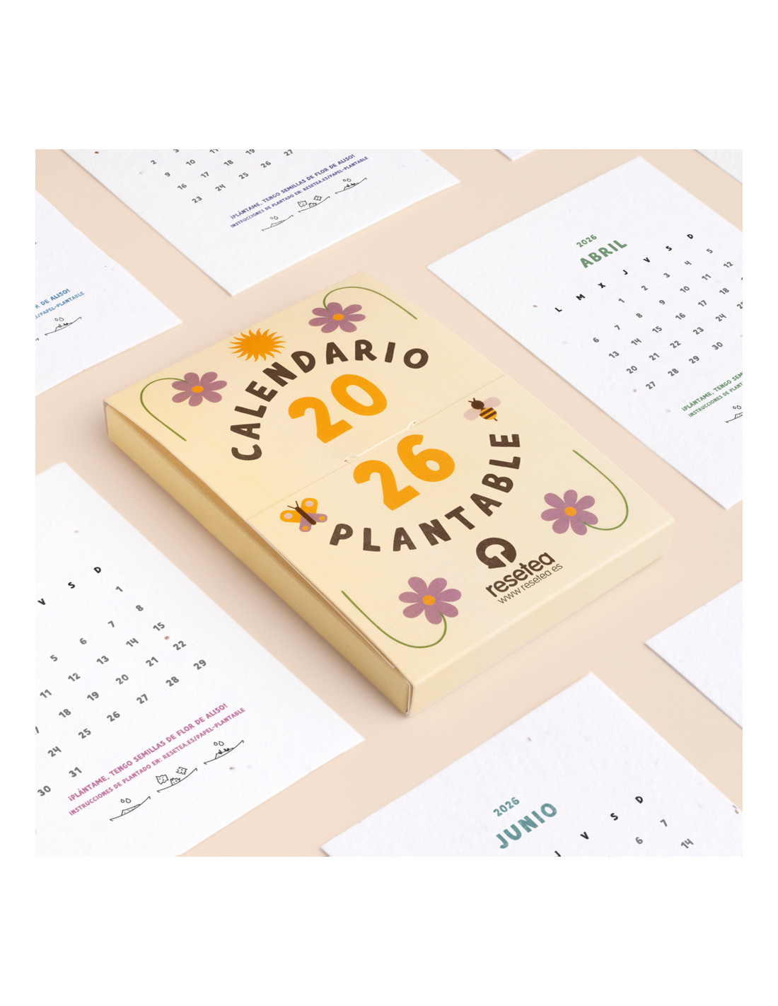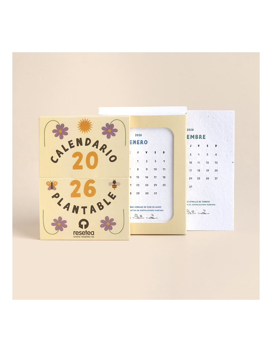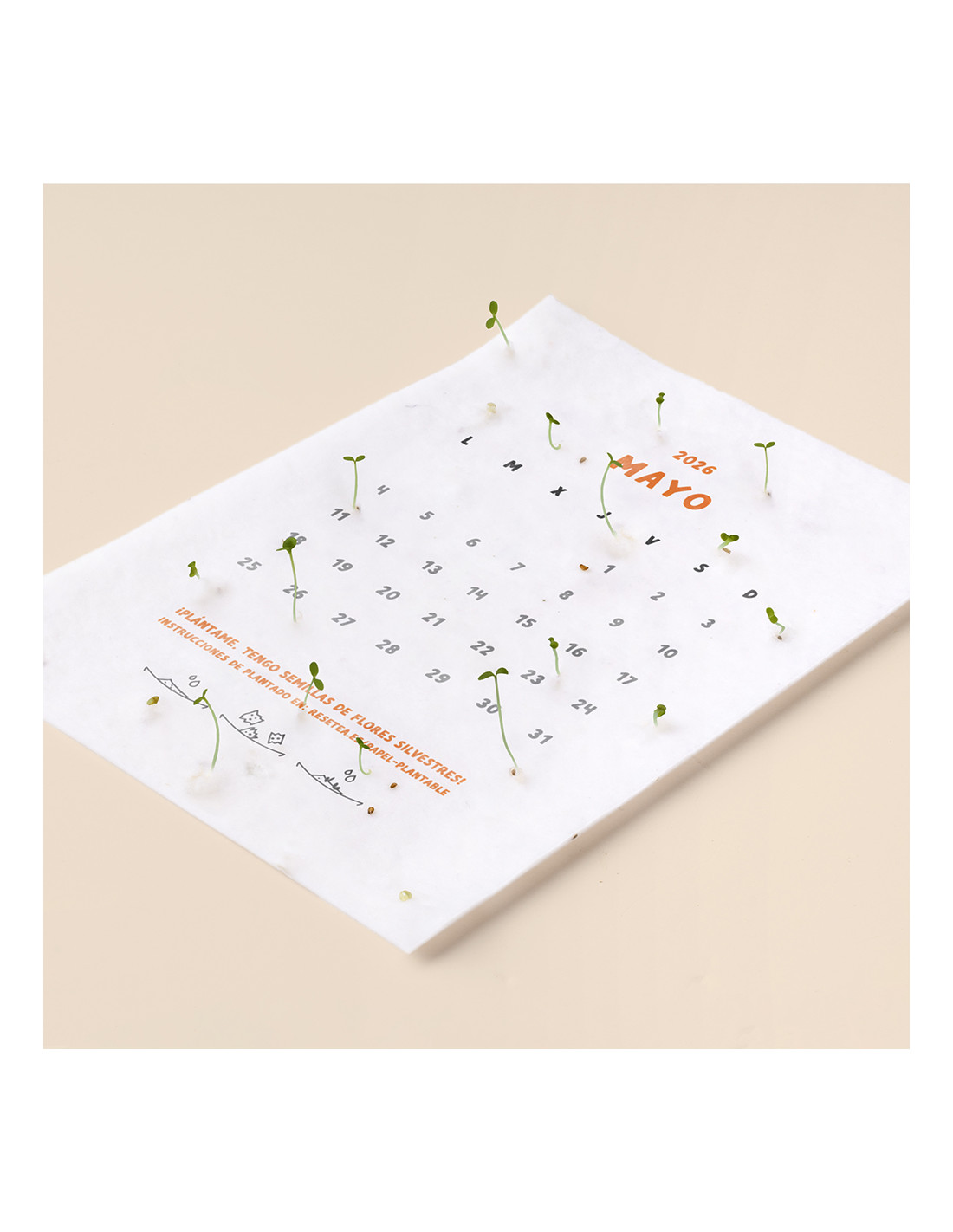 Cada mes está impreso sobre papel de semillas, para que cuando este acabe, puedas sembrarlo y así disfrutar de una nueva planta.