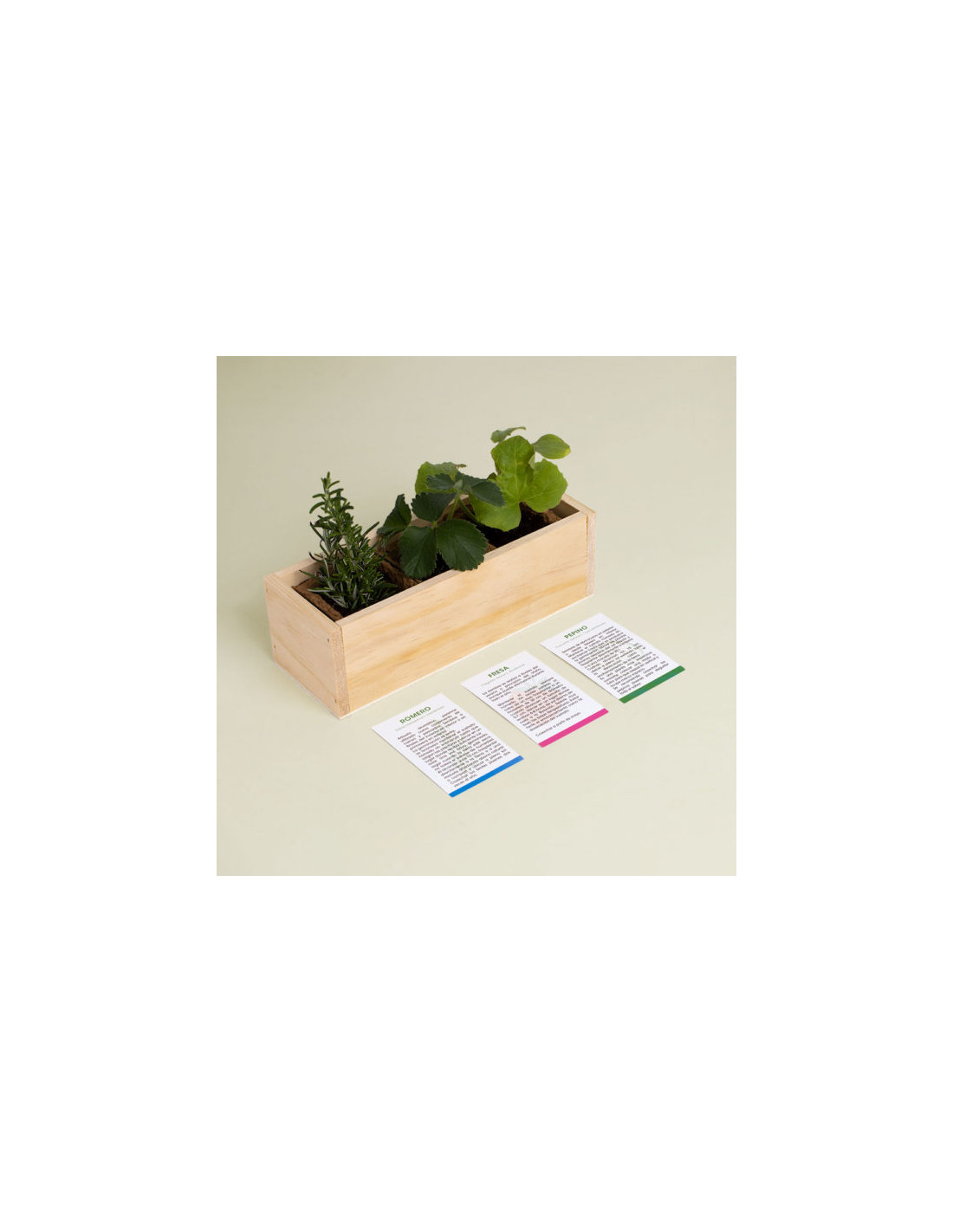 El Kit Gin Tonic contiene todo lo necesario para el cultivo de romero, fresa y pepino: 3 macetas de germinación 100% biodegradables, 3 pastillas de turba, 3 bombas de semillas envueltas en papel de seda y 3 fichas con los cuidados necesarios para cada planta.